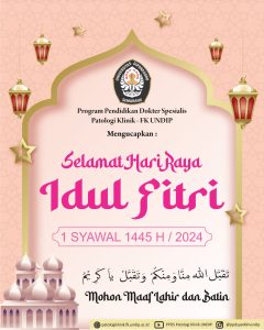 Kami dari Program Pendidikan Dokter Spesialis Patologi Klinik UNDIP mengucapkan Selamat Hari Raya Idul Fitri 1445 H Semoga setiap langkah kita di hari kemenangan ini