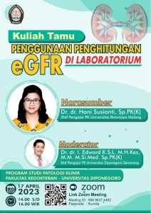 Pada tanggal 26 Juni 2023, Prodi Patologi Klinik menyelenggarakan kuliah tamu daring dengan narasumber dari Universitas Airlangga Surabaya yaitu Dr. dr. Hartono Kahar, Sp.PK (K),
