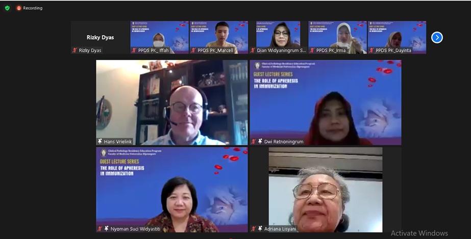 Rabu (16/08/2023) Sebagai upaya untuk meningkatkan kompetensi peserta didik Program Pendidikan Dokter Spesialis Patologi Klinik Fakultas Kedokteran Universitas Diponegoro di bidang bank darah dan kedokteran transfusi, maka Prodi Patologi Klinik mengadakan guest lecture dengan materi “The Role of Apheresis in Immunization” secara online.