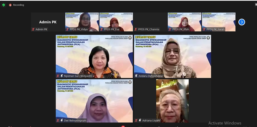 Selasa (18/07/2023) Sebagai upaya untuk meningkatkan kompetensi peserta didik Program Pendidikan Dokter Spesialis Patologi Klinik Fakultas Kedokteran Universitas Diponegoro di bidang penyakit infeksi, maka Prodi Patologi Klinik mengadakan kuliah tamu dengan materi “Diagnostic Stewardship’ dalam Penatagunaan Antimikroba (PGA)” secara online.